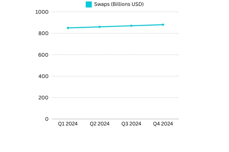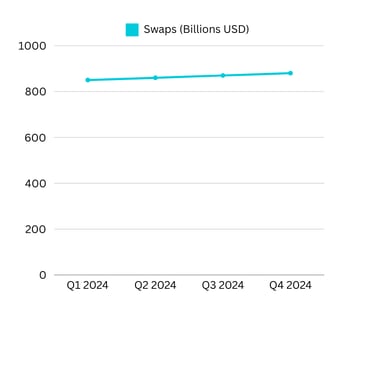This graph illustrates the increased volume of swaps traded throughout 2024, highlighting market reactions to shifting economic conditions.