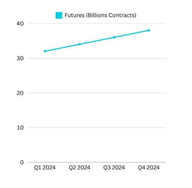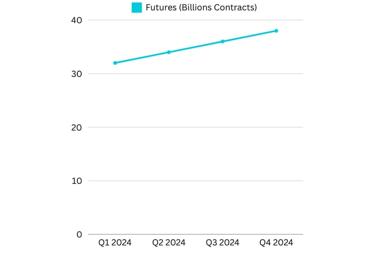 This graph illustrates the increased volume of futures contracts traded throughout 2024.