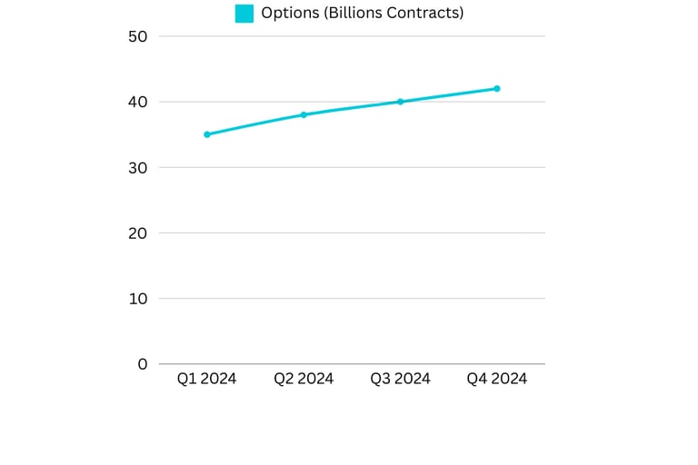 This graph illustrates the significant increase in the volume of options traded during 2024, reflecting changing market conditions.