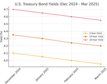 Between January and March, U.S. Treasury bonds experienced a notable increase in volatility, coinciding with the Biden administration's decision to impose higher tariffs—25% on imports from Canada and Mexico and 20% on Chinese goods. This shift in trade policy has contributed to a decline in Treasury yields, raising concerns about potential long-term economic implications. This article will explore the broader impact of these tariff measures, assess their influence on bond markets, and discuss possible strategies the U.S. government could employ to mitigate the decline in yields.